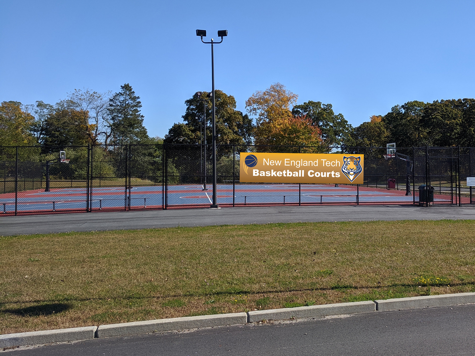 A banner designed to catch the eyes of those passing by, with the goal of incorporating more NEIT branding with the basketball court.